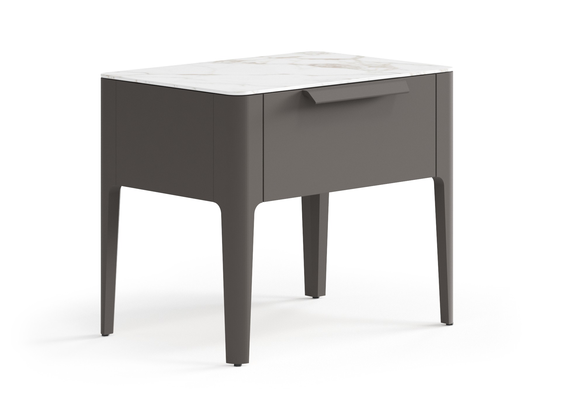 Стильная тумба гармонично впишется в интерьер спальни. Древесные в цвет корпуса опоры из массива лаконичны и надёжны. Сглаженные формы приятны на вид и на ощупь, придают изделию индивидуальность и спокойствие. Одна из особенностей тумбы коллекции Piega — это отделка столешницы керамогранитом, которая делает изделие уникальным. Аккуратная ручка в форме крыла создана специально для удобного захвата, а механизм продуман до мелочей — тихий и плавный, он делает ежедневное пользование изделием максимально комфортным.