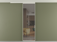 Во всех алюминиевых перегородках, независимо от типа установки, используется компланарный раздвижной механизм, благодаря которому декоративная крышка и полотно находятся в одной плоскости.