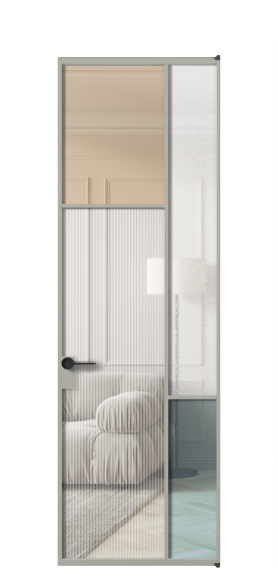 Лаконичный разделительный профиль внутренней раскладки полотна обеспечивает эстетический внешний вид конструкции и идеальную стыковку вставок из стекла.