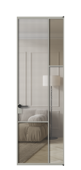 АЛПЛ041.12 Алюминий нейтральный серый Декоративное стекло с сеткой "Mesh silver", триплекс, 6 мм + Прозрачное бронзовое стекло, триплекс