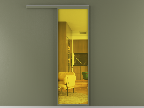 Мы предлагаем девять вариантов декоративного стекла: от кристально-прозрачного до матовых цветных, а также стёкла с эффектом Stopsol, когда лицевая сторона стекла зеркальная, но при включенном освещении за стеклом — становится прозрачной.