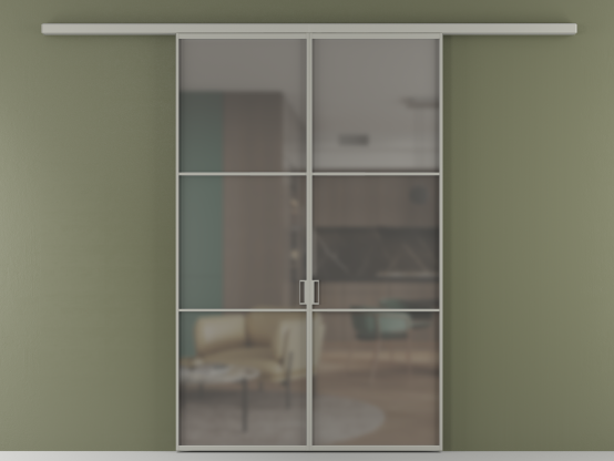 Во всех алюминиевых перегородках, независимо от типа установки, используется компланарный раздвижной механизм, благодаря которому декоративная крышка и полотно находятся в одной плоскости.