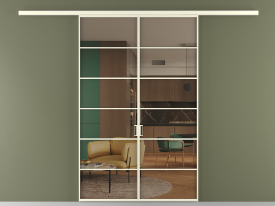 Алюминиевые перегородки имеют единый профиль с алюминиевыми дверьми и легко сочетаются в одном пространстве, не перегружая его. Также их можно комбинировать в интерьере с полотнами из нашего стандартного ассортимента. Помимо этого, система алюминиевых перегородок и дверей координируется со стеновыми панелями Волховец.