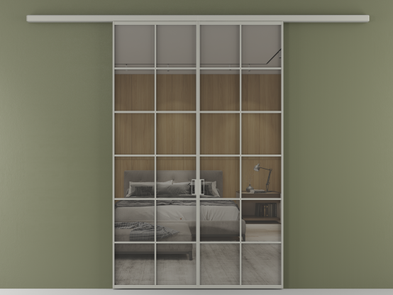 Во всех алюминиевых перегородках, независимо от типа установки, используется компланарный раздвижной механизм, благодаря которому декоративная крышка и полотно находятся в одной плоскости.