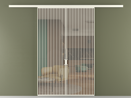 Во всех алюминиевых перегородках, независимо от типа установки, используется компланарный раздвижной механизм, благодаря которому декоративная крышка и полотно находятся в одной плоскости.