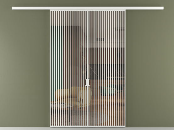 Дополнительно на раздвижную двустворчатую перегородку вдоль стены и четырёхстворчатую перегородку внутри проёма с двумя неподвижным полотнами можно установить механизм синхронного открывания — при открывании одной створки, вторая открывается автоматически.