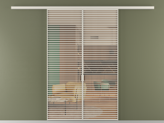 Во всех алюминиевых перегородках, независимо от типа установки, используется компланарный раздвижной механизм, благодаря которому декоративная крышка и полотно находятся в одной плоскости.