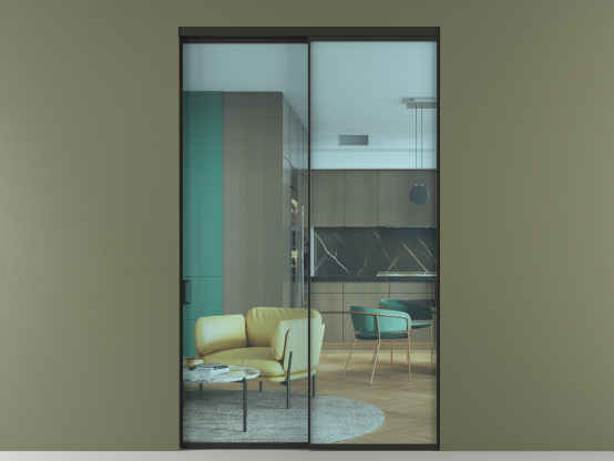 Во всех алюминиевых перегородках, независимо от типа установки, используется компланарный раздвижной механизм, благодаря которому декоративная крышка и полотно находятся в одной плоскости.