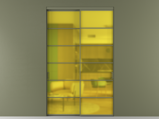 АЛПР 040.04. Алюминий оливковый тёмный Сатинированное жёлтое стекло, триплекс, 6мм