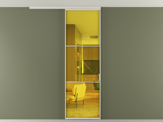 Мы предлагаем девять вариантов декоративного стекла: от кристально-прозрачного до матовых цветных, а также стёкла с эффектом Stopsol, когда лицевая сторона стекла зеркальная, но при включенном освещении за стеклом — становится прозрачной.