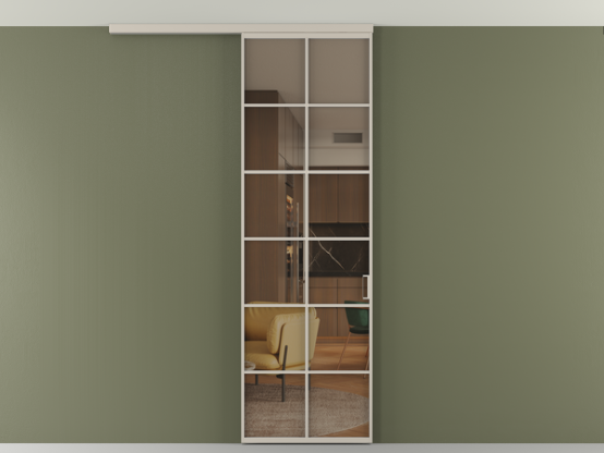 Во всех алюминиевых перегородках, независимо от типа установки, используется компланарный раздвижной механизм, благодаря которому декоративная крышка и полотно находятся в одной плоскости.