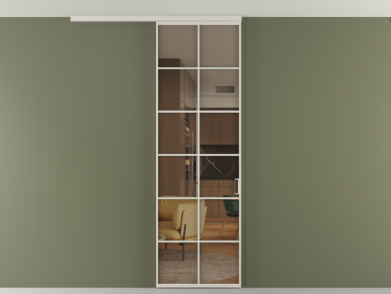 Во всех алюминиевых перегородках, независимо от типа установки, используется компланарный раздвижной механизм, благодаря которому декоративная крышка и полотно находятся в одной плоскости.