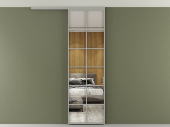Во всех алюминиевых перегородках, независимо от типа установки, используется компланарный раздвижной механизм, благодаря которому декоративная крышка и полотно находятся в одной плоскости.