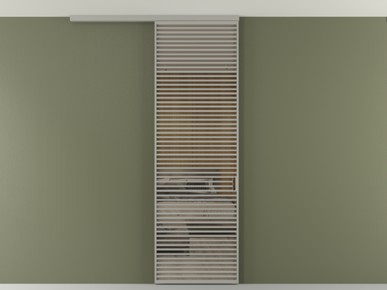 Во всех алюминиевых перегородках, независимо от типа установки, используется компланарный раздвижной механизм, благодаря которому декоративная крышка и полотно находятся в одной плоскости.