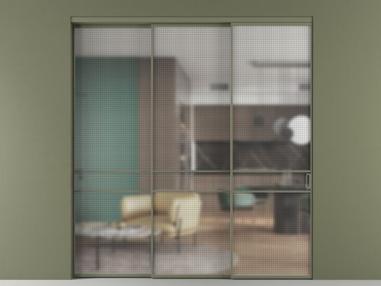 Во всех алюминиевых перегородках, независимо от типа установки, используется компланарный раздвижной механизм, благодаря которому декоративная крышка и полотно находятся в одной плоскости.