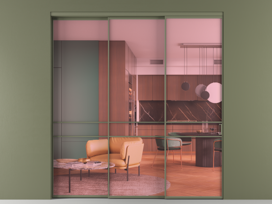 АЛПР 040.02. Алюминий оливковый тёмный Прозрачное розовое стекло, триплекс, 6мм