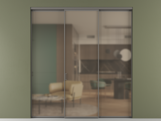 Во всех алюминиевых перегородках, независимо от типа установки, используется компланарный раздвижной механизм, благодаря которому декоративная крышка и полотно находятся в одной плоскости.