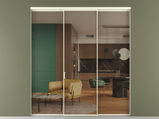 Во всех алюминиевых перегородках, независимо от типа установки, используется компланарный раздвижной механизм, благодаря которому декоративная крышка и полотно находятся в одной плоскости.