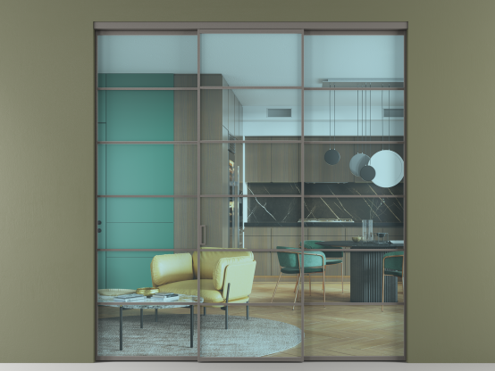 Алюминиевые перегородки имеют единый профиль с алюминиевыми дверьми и легко сочетаются в одном пространстве, не перегружая его. Также их можно комбинировать в интерьере с полотнами из нашего стандартного ассортимента. Помимо этого, система алюминиевых перегородок и дверей координируется со стеновыми панелями Волховец.