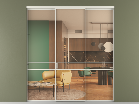 Алюминиевые перегородки имеют единый профиль с алюминиевыми дверьми и легко сочетаются в одном пространстве, не перегружая его. Также их можно комбинировать в интерьере с полотнами из нашего стандартного ассортимента. Помимо этого, система алюминиевых перегородок и дверей координируется со стеновыми панелями Волховец.
