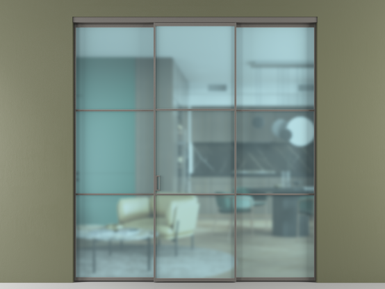 Во всех алюминиевых перегородках, независимо от типа установки, используется компланарный раздвижной механизм, благодаря которому декоративная крышка и полотно находятся в одной плоскости.