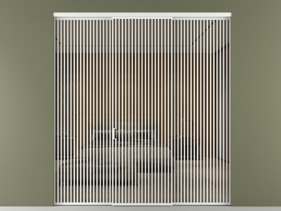 Во всех алюминиевых перегородках, независимо от типа установки, используется компланарный раздвижной механизм, благодаря которому декоративная крышка и полотно находятся в одной плоскости.