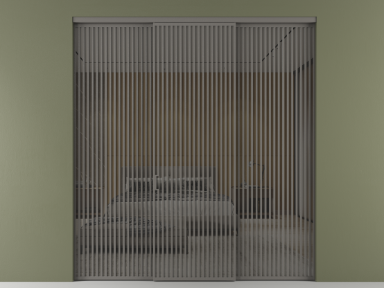 Во всех алюминиевых перегородках, независимо от типа установки, используется компланарный раздвижной механизм, благодаря которому декоративная крышка и полотно находятся в одной плоскости.
