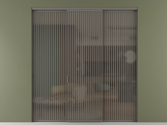 Дополнительно на раздвижную двустворчатую перегородку вдоль стены и четырёхстворчатую перегородку внутри проёма с двумя неподвижным полотнами можно установить механизм синхронного открывания — при открывании одной створки, вторая открывается автоматически.