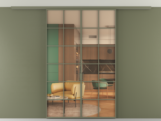 Алюминиевые перегородки имеют единый профиль с алюминиевыми дверьми и легко сочетаются в одном пространстве, не перегружая его. Также их можно комбинировать в интерьере с полотнами из нашего стандартного ассортимента. Помимо этого, система алюминиевых перегородок и дверей координируется со стеновыми панелями Волховец.