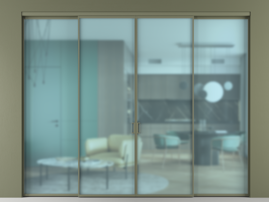 Дополнительно на раздвижную двустворчатую перегородку вдоль стены и четырёхстворчатую перегородку внутри проёма с двумя неподвижным полотнами можно установить механизм синхронного открывания — при открывании одной створки, вторая открывается автоматически.