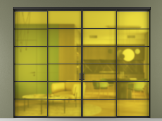 АЛПР 040.04. Алюминий Черный Сатинированное жёлтое стекло, триплекс, 6мм