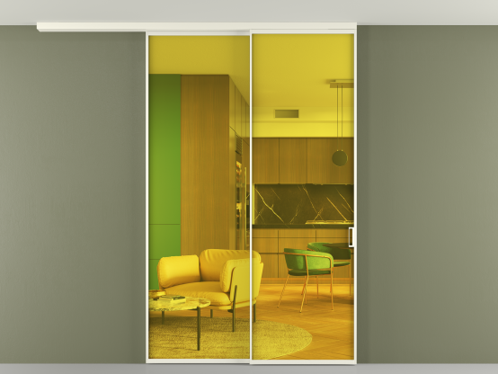 Во всех алюминиевых перегородках, независимо от типа установки, используется компланарный раздвижной механизм, благодаря которому декоративная крышка и полотно находятся в одной плоскости.