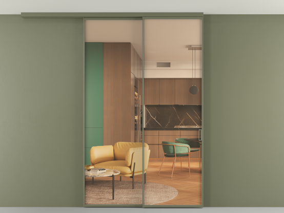 Алюминиевые перегородки имеют единый профиль с алюминиевыми дверьми и легко сочетаются в одном пространстве, не перегружая его. Также их можно комбинировать в интерьере с полотнами из нашего стандартного ассортимента. Помимо этого, система алюминиевых перегородок и дверей координируется со стеновыми панелями Волховец.