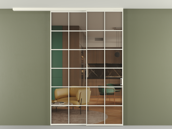 Алюминиевые перегородки имеют единый профиль с алюминиевыми дверьми и легко сочетаются в одном пространстве, не перегружая его. Также их можно комбинировать в интерьере с полотнами из нашего стандартного ассортимента. Помимо этого, система алюминиевых перегородок и дверей координируется со стеновыми панелями Волховец.