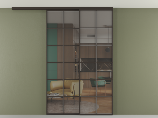 Алюминиевые перегородки имеют единый профиль с алюминиевыми дверьми и легко сочетаются в одном пространстве, не перегружая его. Также их можно комбинировать в интерьере с полотнами из нашего стандартного ассортимента. Помимо этого, система алюминиевых перегородок и дверей координируется со стеновыми панелями Волховец.