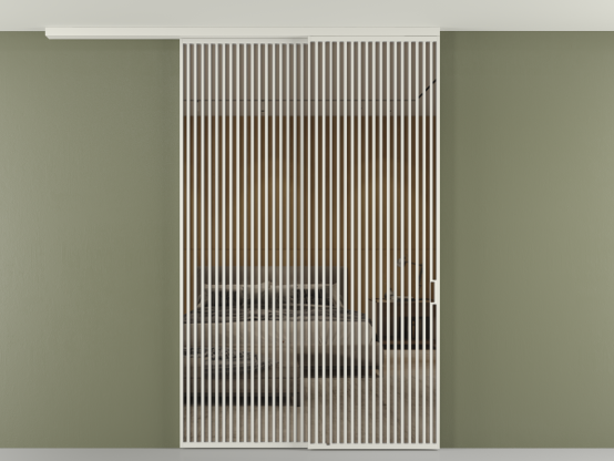 Перегородка Формато вдоль стены на потолок 2 створки с синхронным механизмом