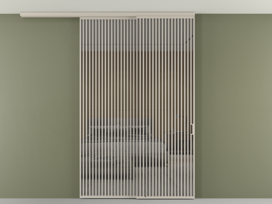 Во всех алюминиевых перегородках, независимо от типа установки, используется компланарный раздвижной механизм, благодаря которому декоративная крышка и полотно находятся в одной плоскости.