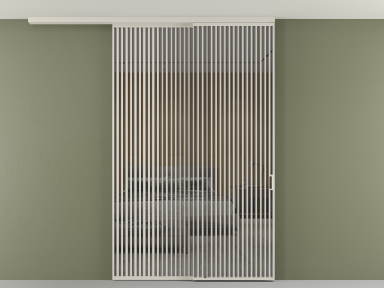 Во всех алюминиевых перегородках, независимо от типа установки, используется компланарный раздвижной механизм, благодаря которому декоративная крышка и полотно находятся в одной плоскости.