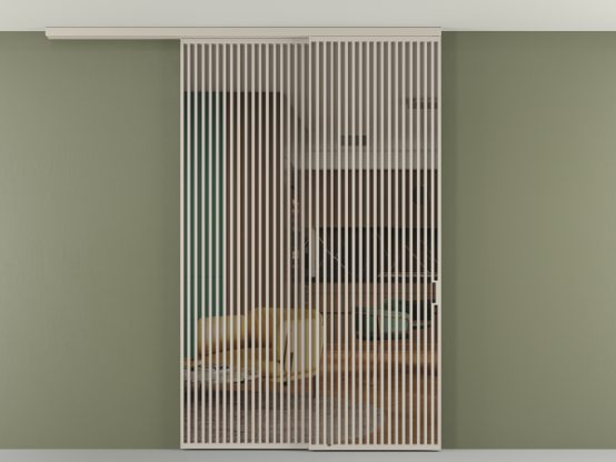 Во всех алюминиевых перегородках, независимо от типа установки, используется компланарный раздвижной механизм, благодаря которому декоративная крышка и полотно находятся в одной плоскости.