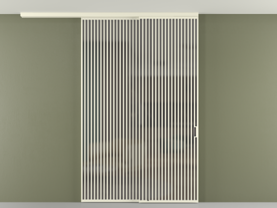 Во всех алюминиевых перегородках, независимо от типа установки, используется компланарный раздвижной механизм, благодаря которому декоративная крышка и полотно находятся в одной плоскости.