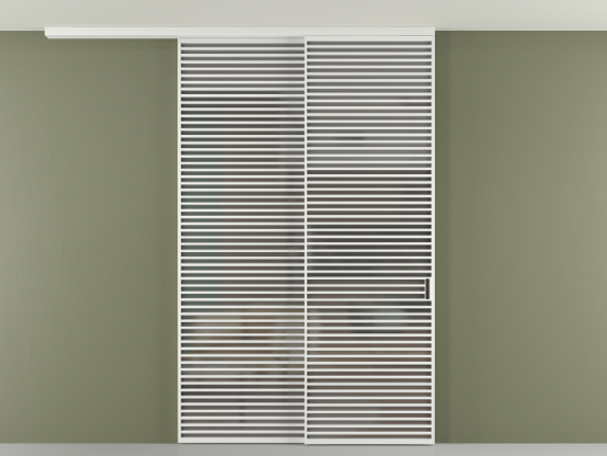 Дополнительно на раздвижную двустворчатую перегородку вдоль стены и четырёхстворчатую перегородку внутри проёма с двумя неподвижным полотнами можно установить механизм синхронного открывания — при открывании одной створки, вторая открывается автоматически.