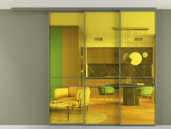 АЛПР 040.02. Алюминий оливковый тёмный Прозрачное жёлтое стекло, триплекс, 6мм