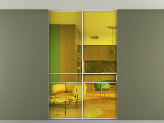 АЛПР 040.02. Алюминий Белый Прозрачное жёлтое стекло, триплекс, 6мм