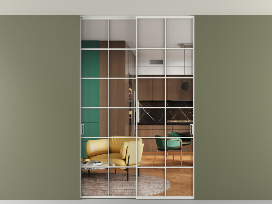 Перегородка Formato внутри проёма скрытое крепление в потолок 2 створки