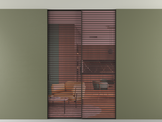Во всех алюминиевых перегородках, независимо от типа установки, используется компланарный раздвижной механизм, благодаря которому декоративная крышка и полотно находятся в одной плоскости.