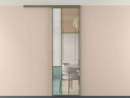 Во всех алюминиевых перегородках, независимо от типа установки, используется компланарный раздвижной механизм, благодаря которому декоративная крышка и полотно находятся в одной плоскости.