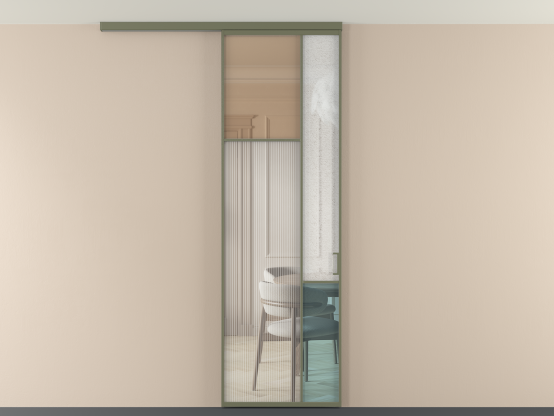 Во всех алюминиевых перегородках, независимо от типа установки, используется компланарный раздвижной механизм, благодаря которому декоративная крышка и полотно находятся в одной плоскости.