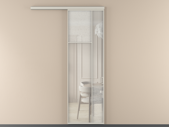 Во всех алюминиевых перегородках, независимо от типа установки, используется компланарный раздвижной механизм, благодаря которому декоративная крышка и полотно находятся в одной плоскости.