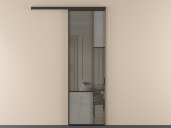 Во всех алюминиевых перегородках, независимо от типа установки, используется компланарный раздвижной механизм, благодаря которому декоративная крышка и полотно находятся в одной плоскости.