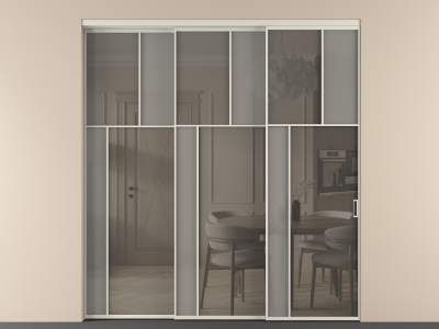 Перегородка Mosaic внутри проёма 3 створки с синхронным механизмом